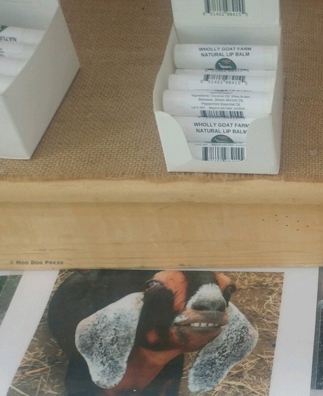 Wholly Goat smile and lip balm. Photo © Moo Dog Press August 2, 2018 Editor Previous Next Goat smile and lip balm – part of Wholly Goat Farm booth at WFM – makers of all-natural goat milk soap, lotions, body butter, more. Return to A Resource & Let’s Go