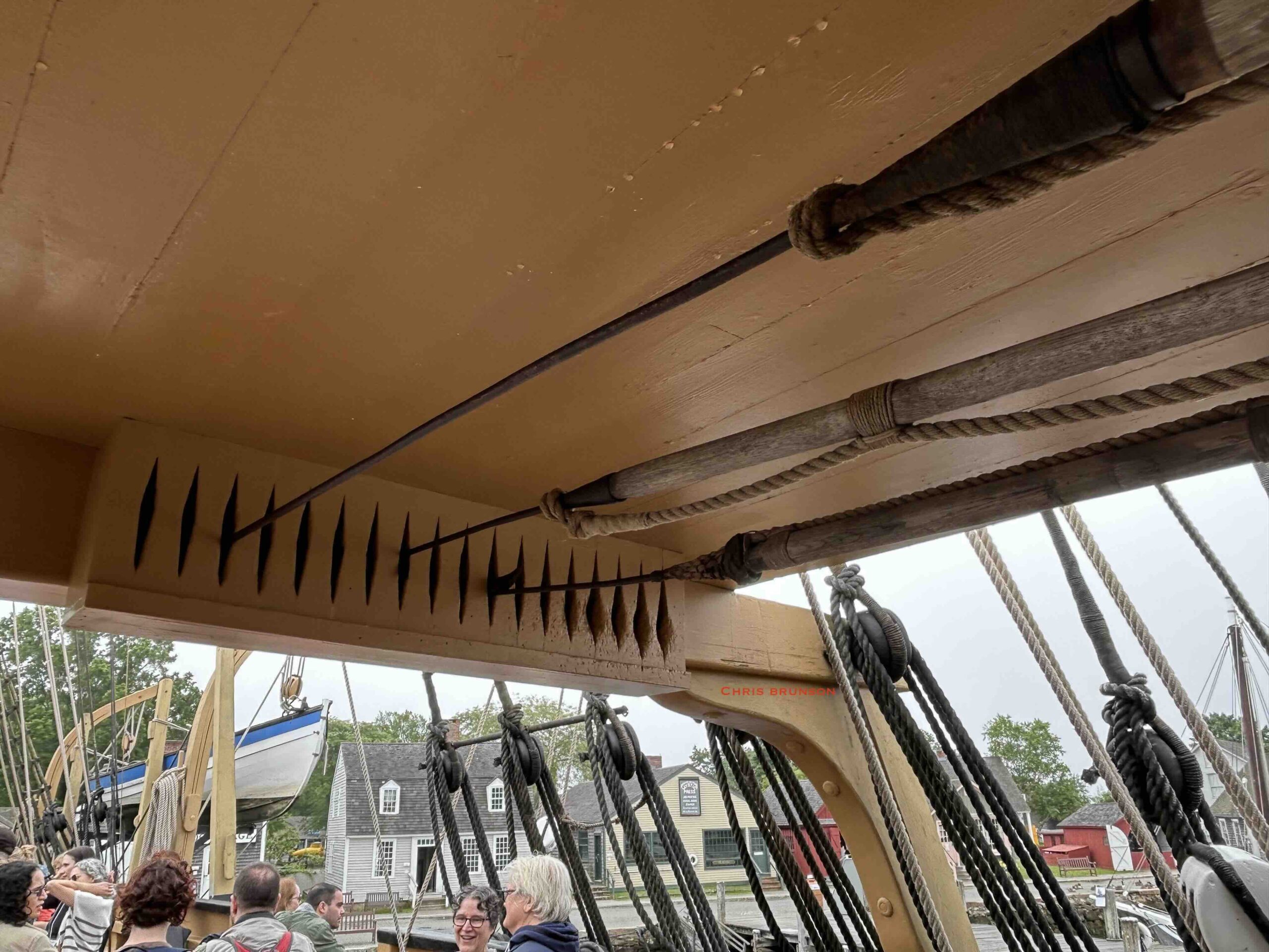 Whaleboats. Cooking/rendering kettles. Chicken coop on deck. A head/outhouse. Slippery decks, so glad to have worn gripper soles, boots.