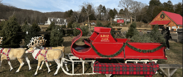Kriz Farm in Bethany, CT. Draft horses (usually), fresh-cut trees and greens. Stop by Clover Nook on the way to or from this destination.