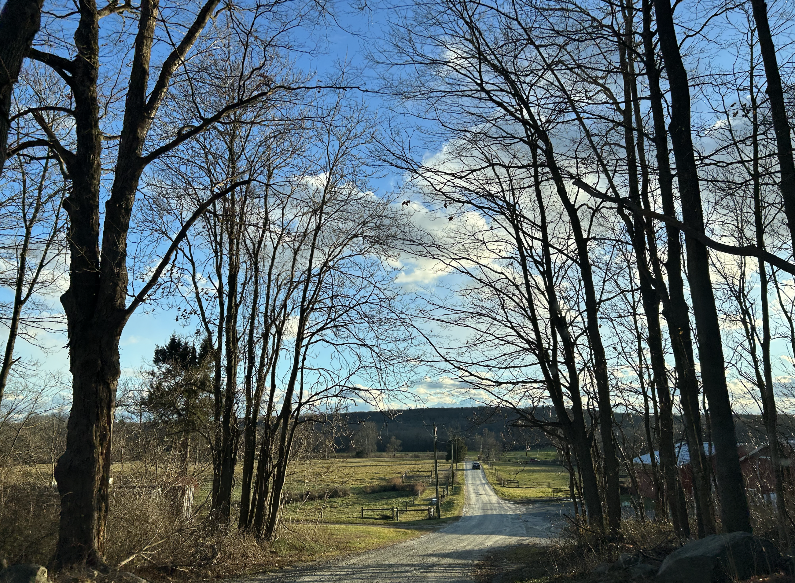 Over the river, through the woods. After the “goats in the road” signs, this view. Then a bevy of pastured beef cattle to the right